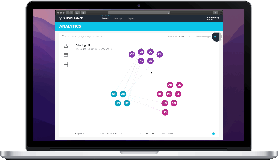 The team arrived at a novel UI to visualize the participant groups and direction of communication—that along with AI, quickly reveals suspicious interactions.